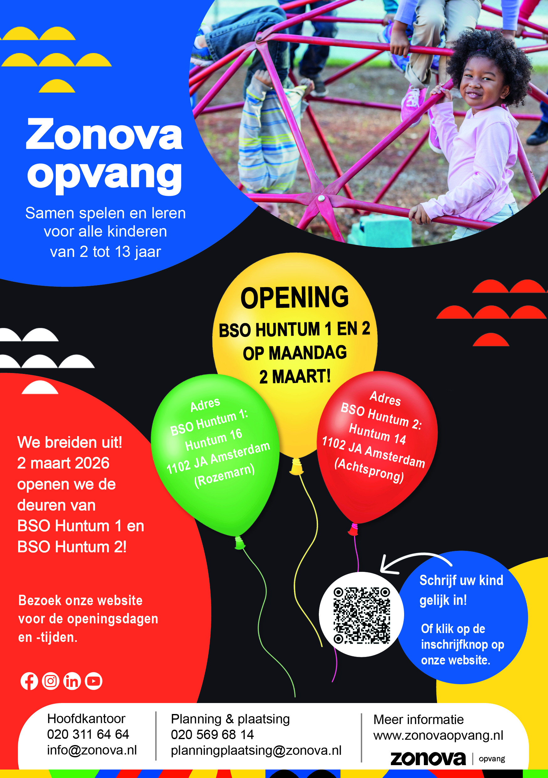 👉🏽 Kijk op: https://zonovaopvang.nl/bso/bso-huntum of scan de QR-code voor meer informatie, wacht niet te lang, schrijf uw kind gelijk in! De flyer delen=aardig.